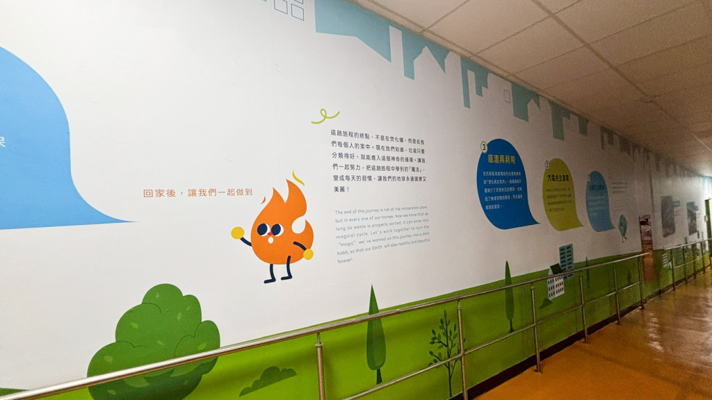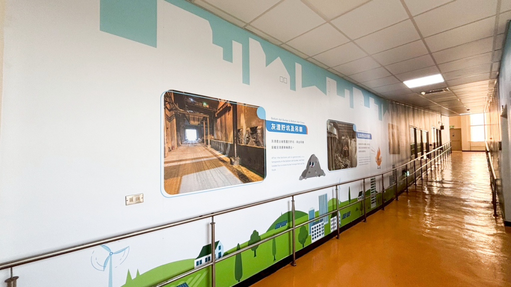 完成後的教學中心空間,不再只是靜態資訊展示,而是轉變為具有引導性與互動感的視覺場域。參訪者在移動過程中,即可自然接收垃圾焚化與永續能源相關知識,整體空間更具活力與親和力,也大幅提升教育推廣效果。