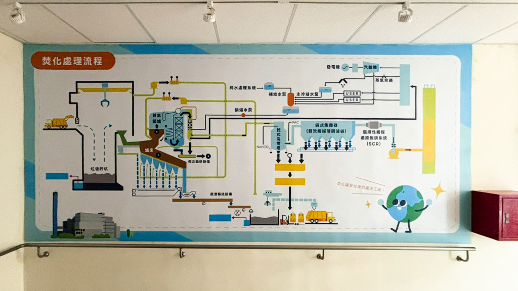 崁頂垃圾資源回收廠長期肩負環境教育推廣功能,教學中心作為參訪重點場域,原有牆面多以資訊性圖文呈現。此次設備更新計畫中,期望透過設計導入,提升整體展示效果,讓參訪者在理解垃圾焚化流程與永續能源概念時,有更直觀且具記憶點的體驗。