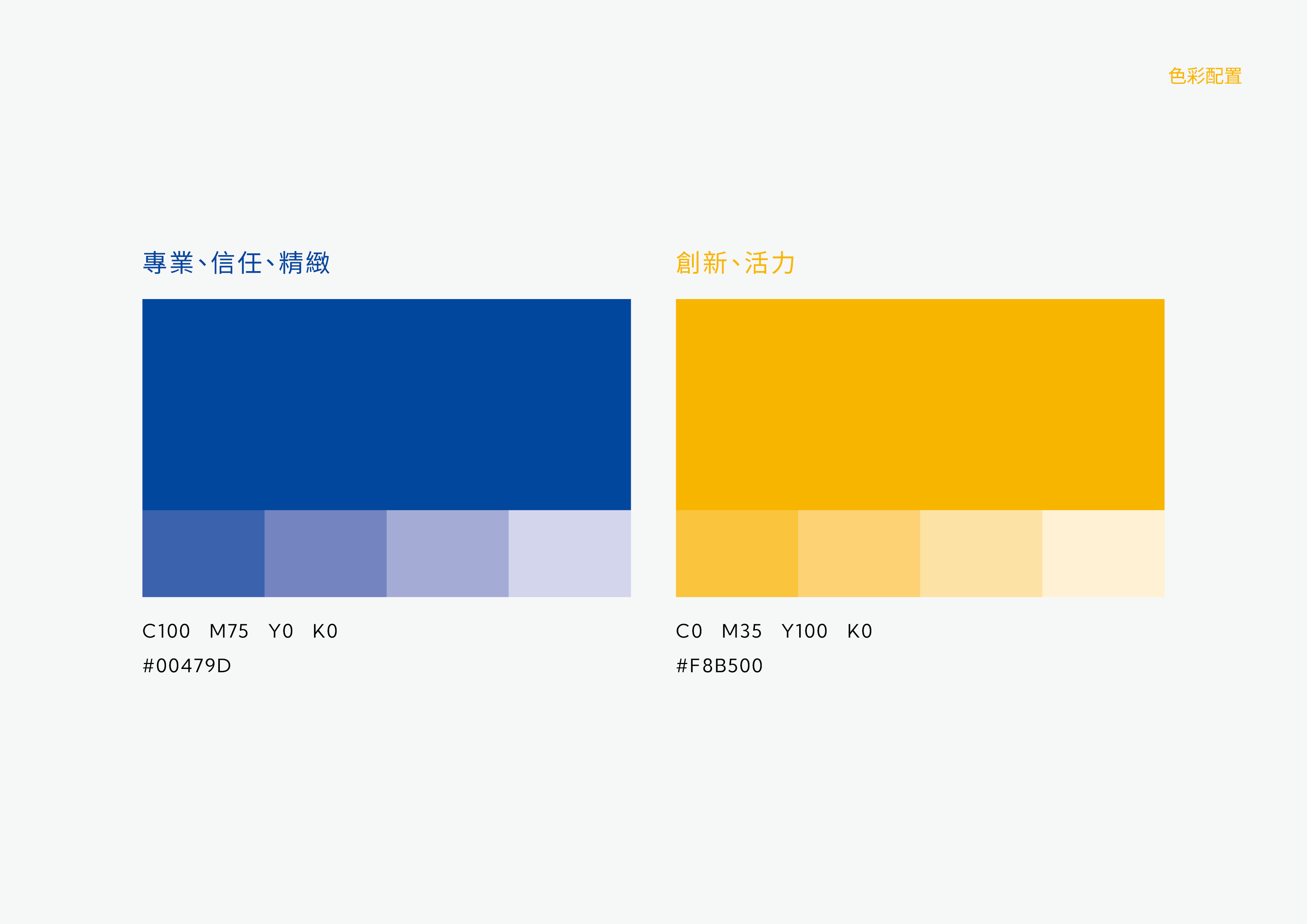 色彩規劃以深藍與亮黃色為主軸,分別代表信任與活力,強化品牌在專業與創新之間的平衡定位。